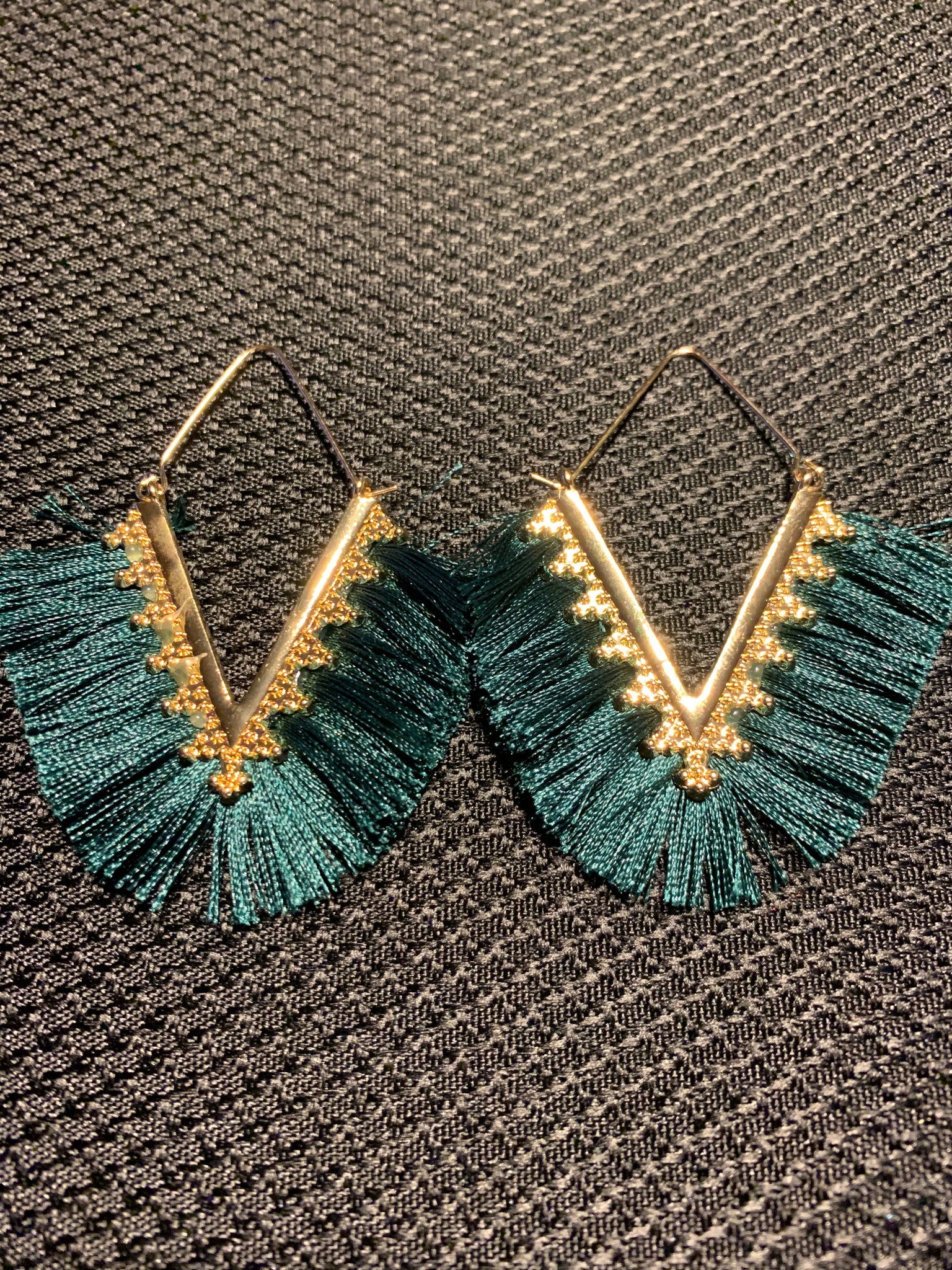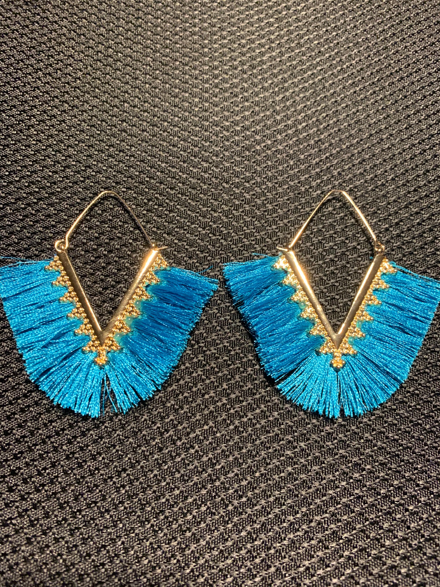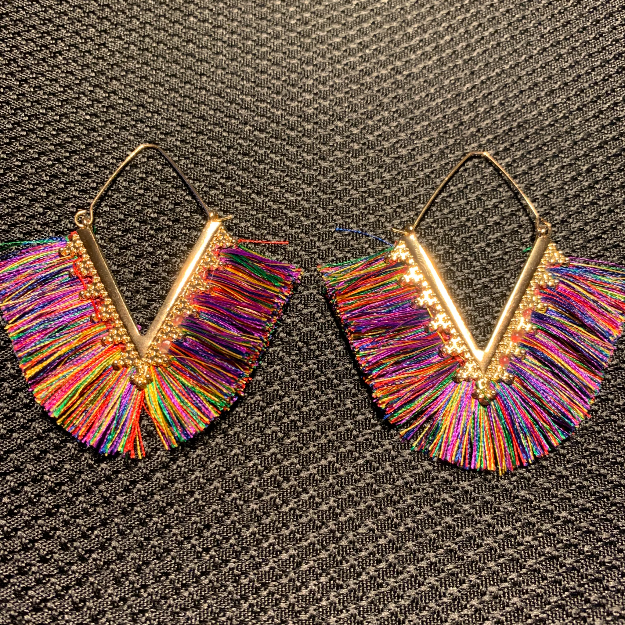 Multi colored-blue, green, red, yellow, purple tassel earrings