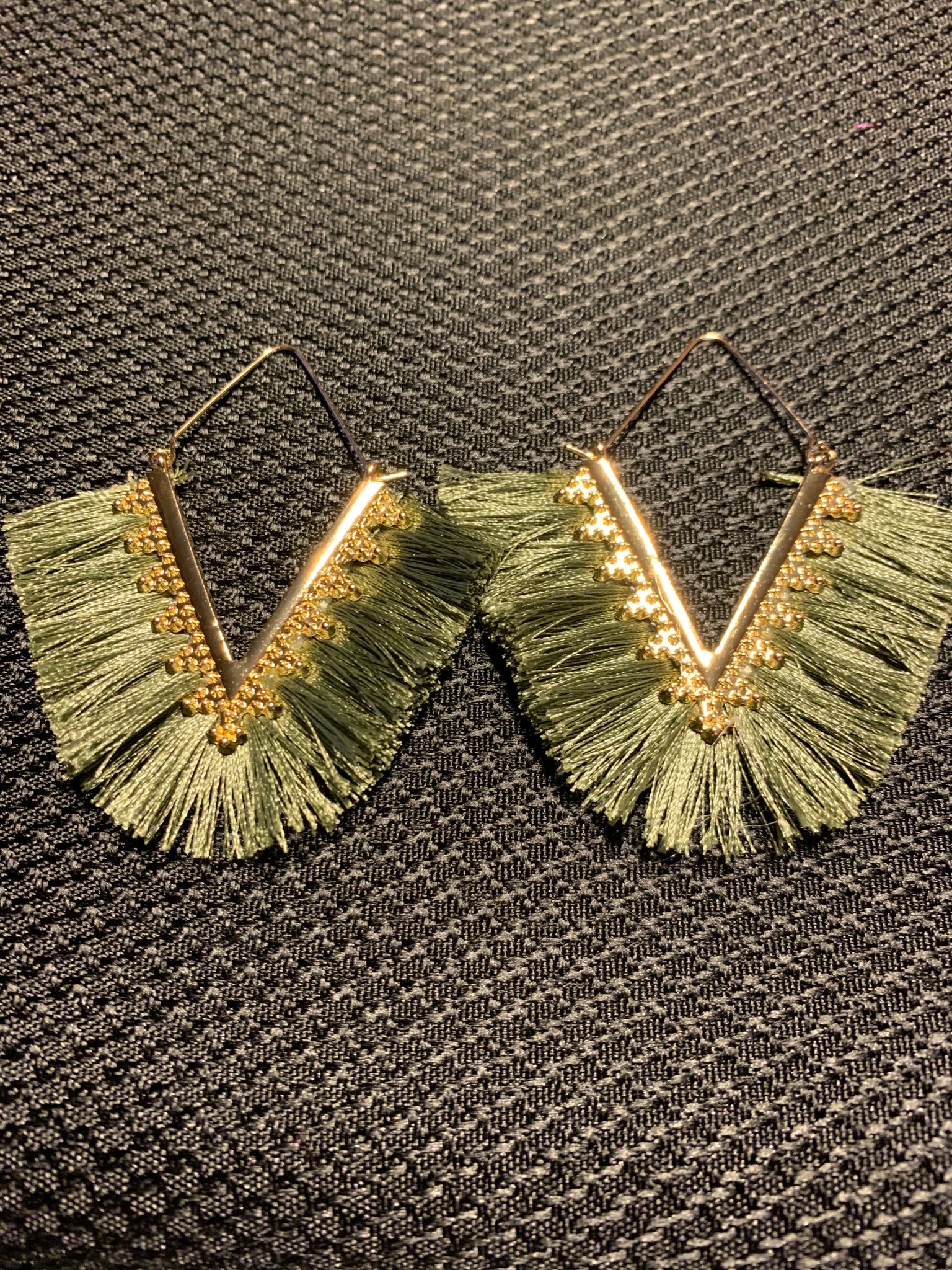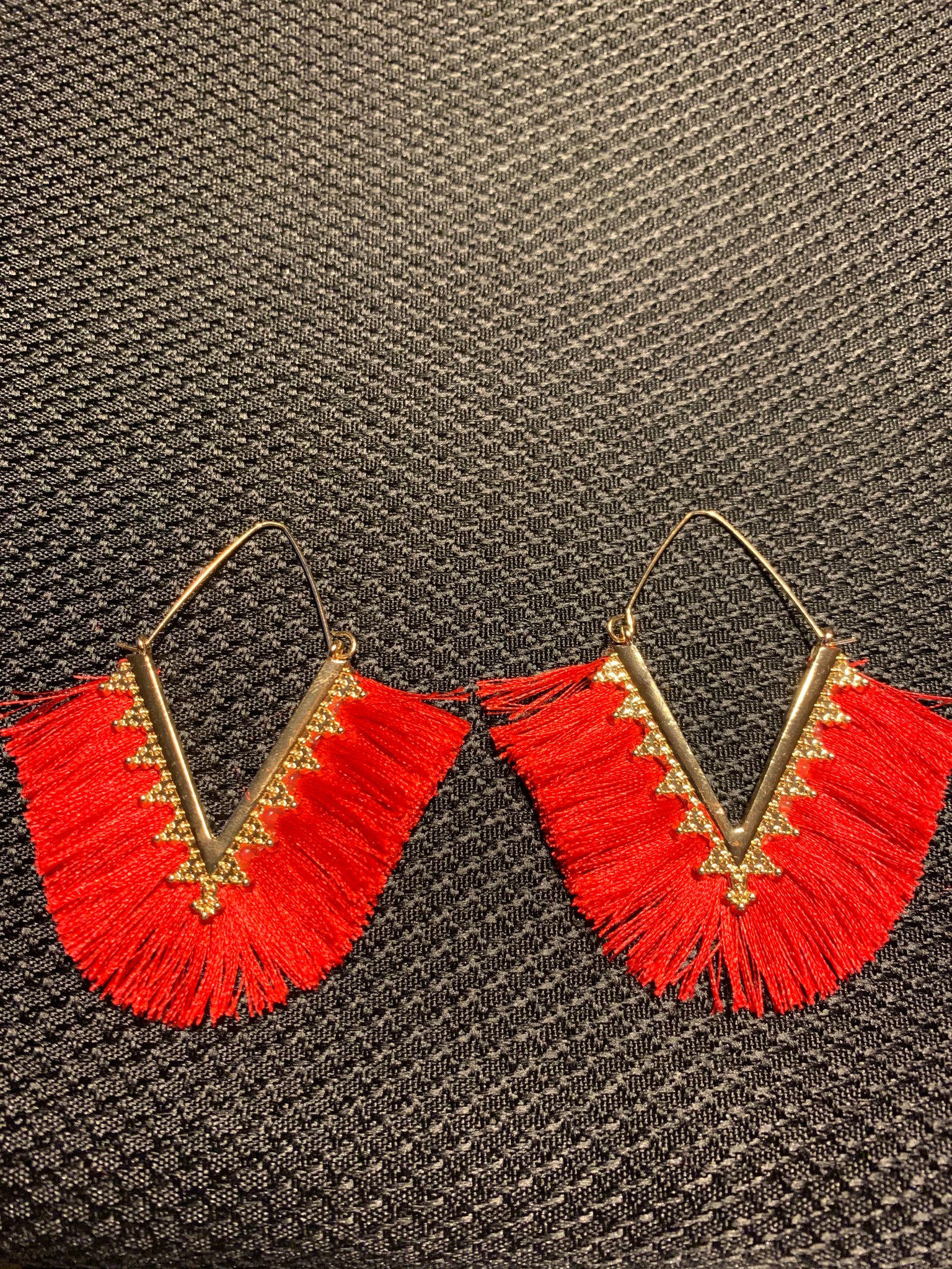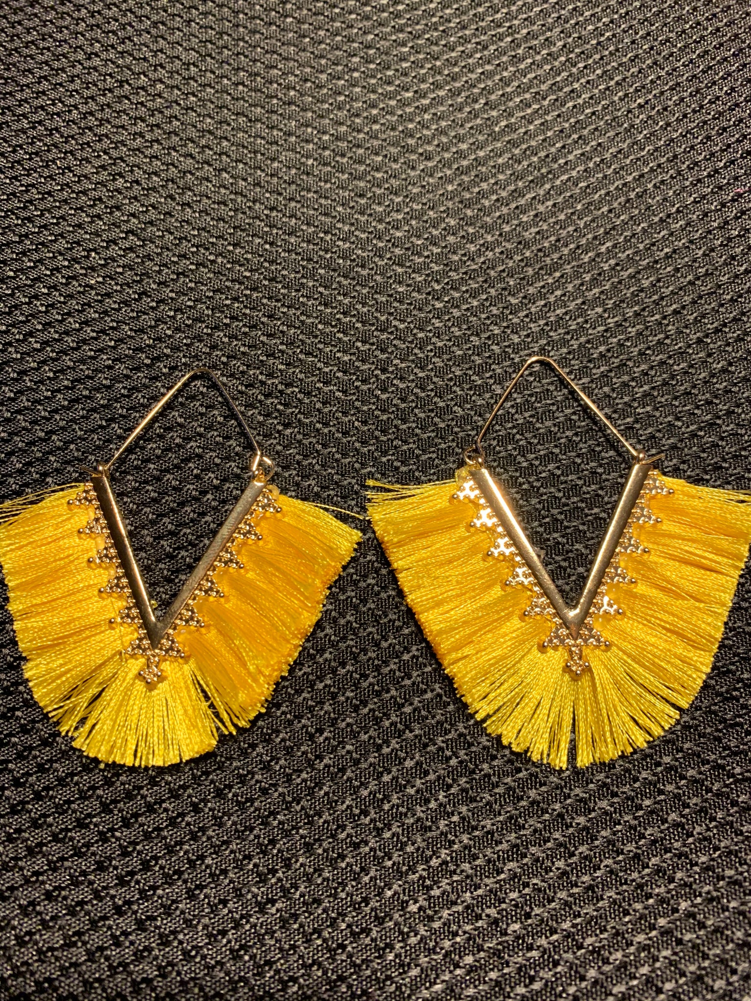 Multi colored-blue, green, red, yellow, purple tassel earrings